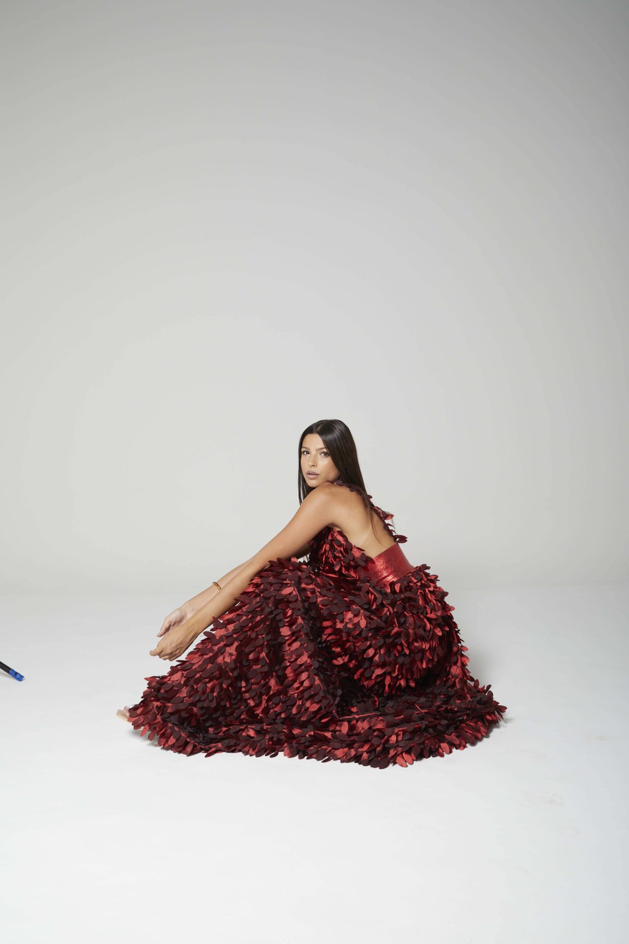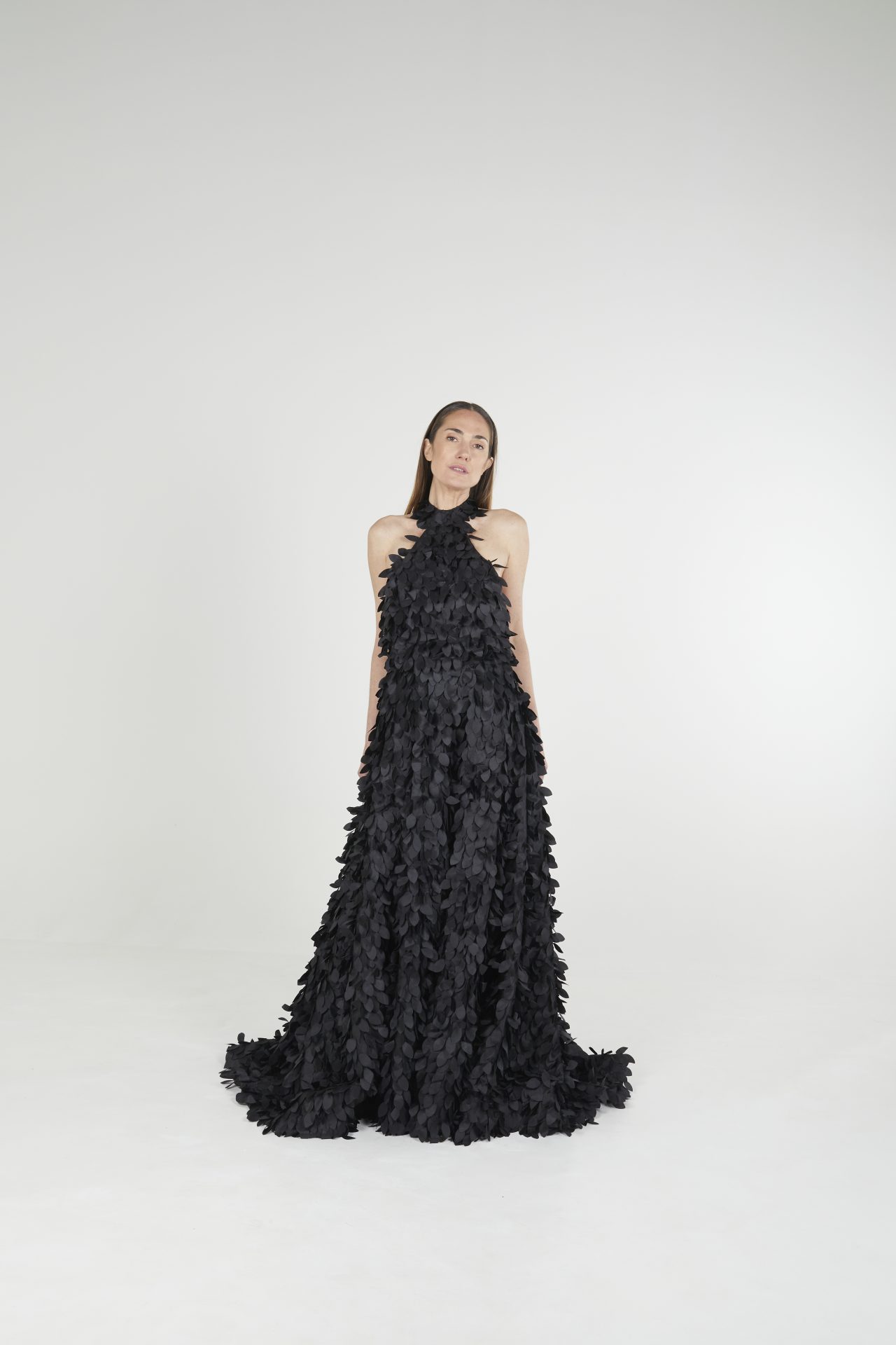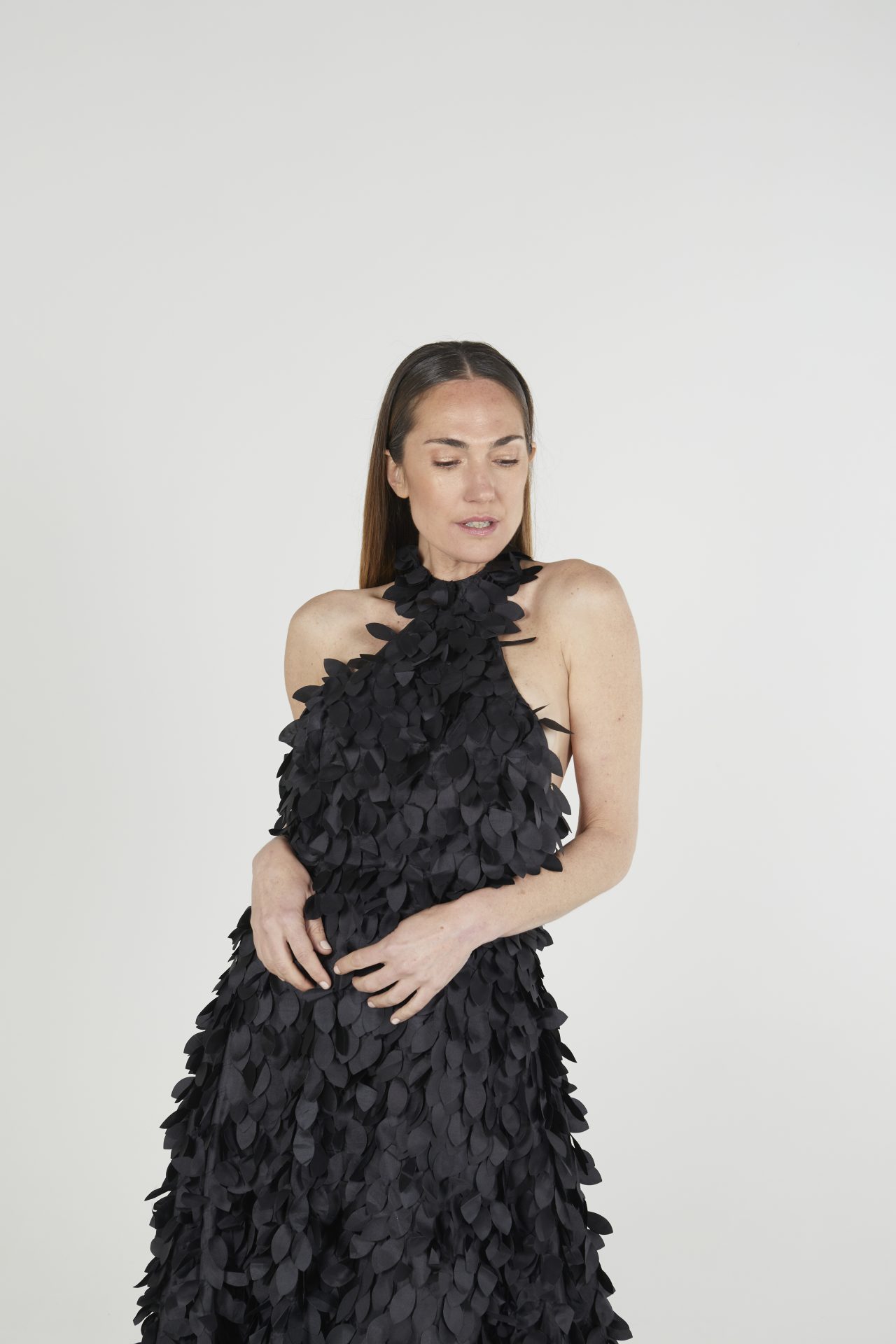 VESTIDO DE PETALOS EN TAFAN TORNASOL